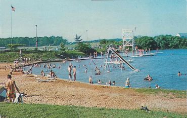 Pine Lake Waterpark, located four miles west of Berne, Indiana, has been a family-run business since 1922. The story of Pine Lake begins with a farmer, Levi Augsburger, who, in 1908, began to dig for sand. Before long, Augsburger had turned a flat field into a sand quarry. The quarry was workable, but only for a few years. Water became a problem early on because of natural springs feeding the quarry. So that digging could continue, the spring water was pumped out into a creek adjacent to the quarry. However, the land between the quarry and the creek gradually eroded, leaking more water into the quarry. Another problem, perhaps more limiting, was that the deeper Augsburger dug, the more the sand was contaminated with dirt and clay. Augsburger decided to put the quarry up for sale.