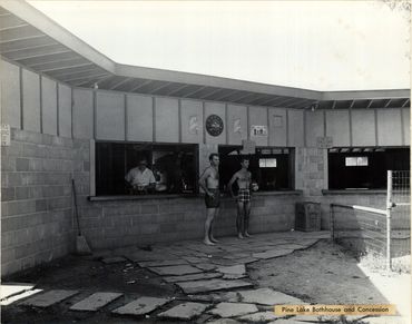 Throughout the middle part of the 20th century, Jerome Yager directed building projects, including a retaining wall for the beach, a pier, a raft, and a water slide. This metal slide, located in the shallow swimming area, was approximately 15-feet high and had water running down it. Two tennis courts and a basketball court were added. Pine Lake managers during this period were Ed Spehiger (1942 to 1946), Jim Hedges (1947 to 1950), Doit McCrory (1951 to 1954), Ed Smith (1955 to 1957), and Paul Bixler (1958 to 1960).