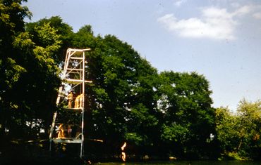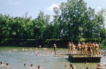 Scholer believed that prices needed to be kept low for Pine Lake to be successful, and very importantly, people needed things to do. In 1967, Scholer developed the first of dozens of Pine Lake attractions. When he heard of swimmers using fiberglass bobbers in Lake James in northern Indiana, he inquired about purchasing the bobbers for Pine Lake, but they were too badly damaged to use. As another option, he took a chance by purchasing two steel buoys designed for use in the Great Lakes for $500. A local welder, Dave Lybarger, welded platforms onto the buoys and custom-made two of Pine Lake’s most popular and long-lasting attractions, the two-man bobber and the crow’s nest bobber.